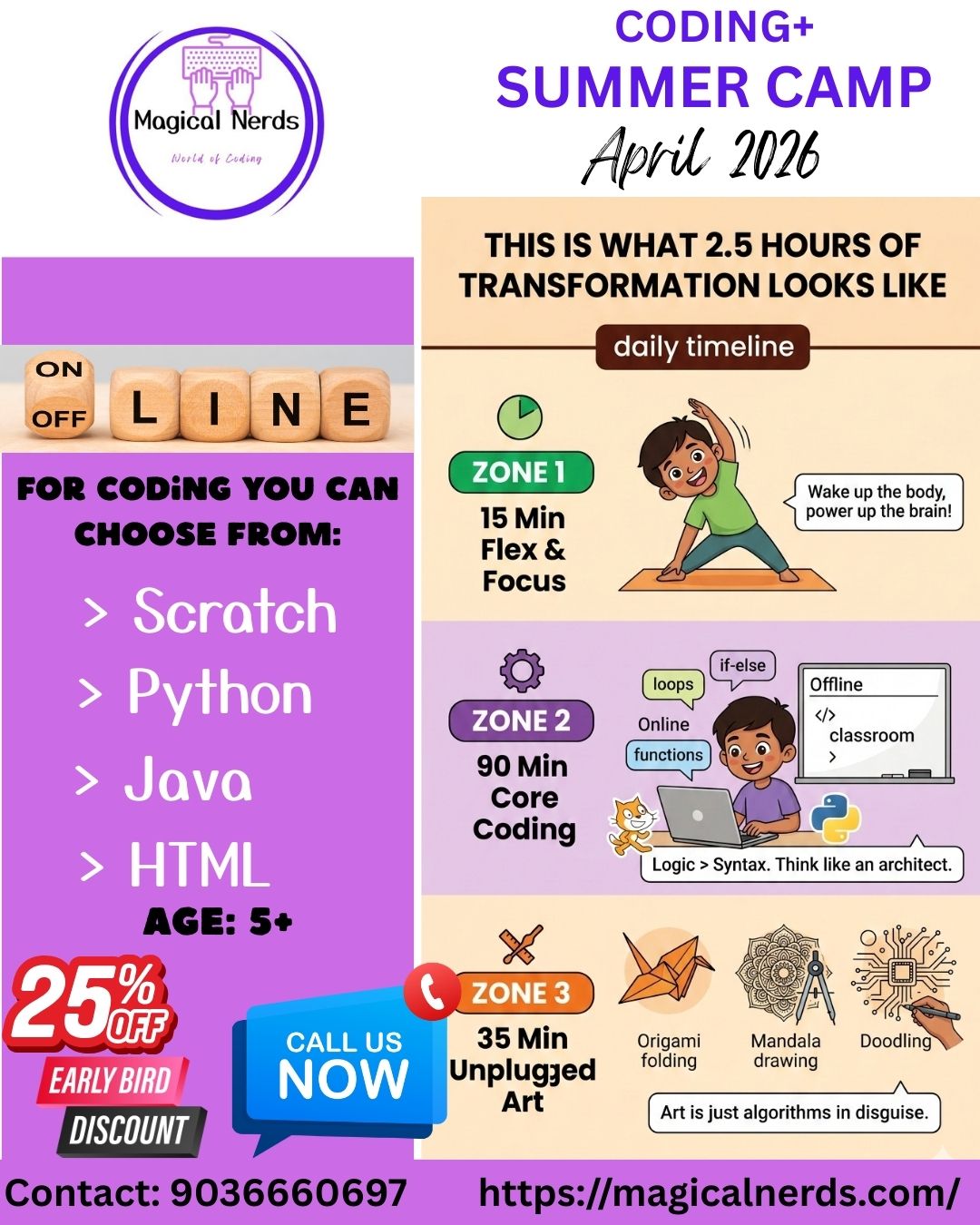 β 90 mins Real Coding (Scratch, Python, Java, HTML)